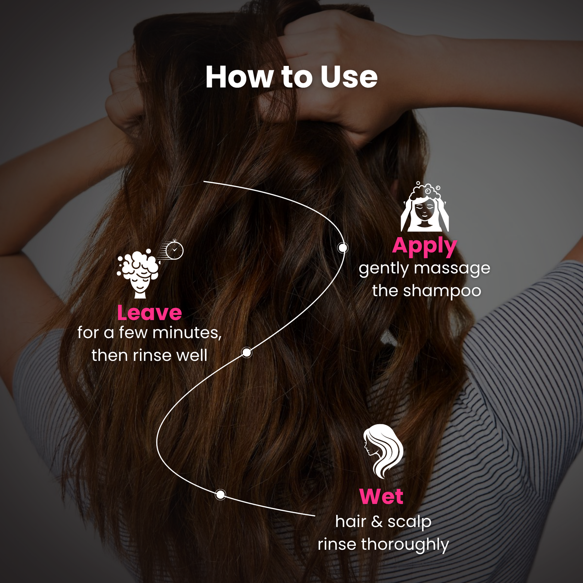 Apply to wet hair and gently massage into the scalp to create a rich lather. Leave for a few moments, then rinse thoroughly. Repeat if needed. For best results, use regularly.